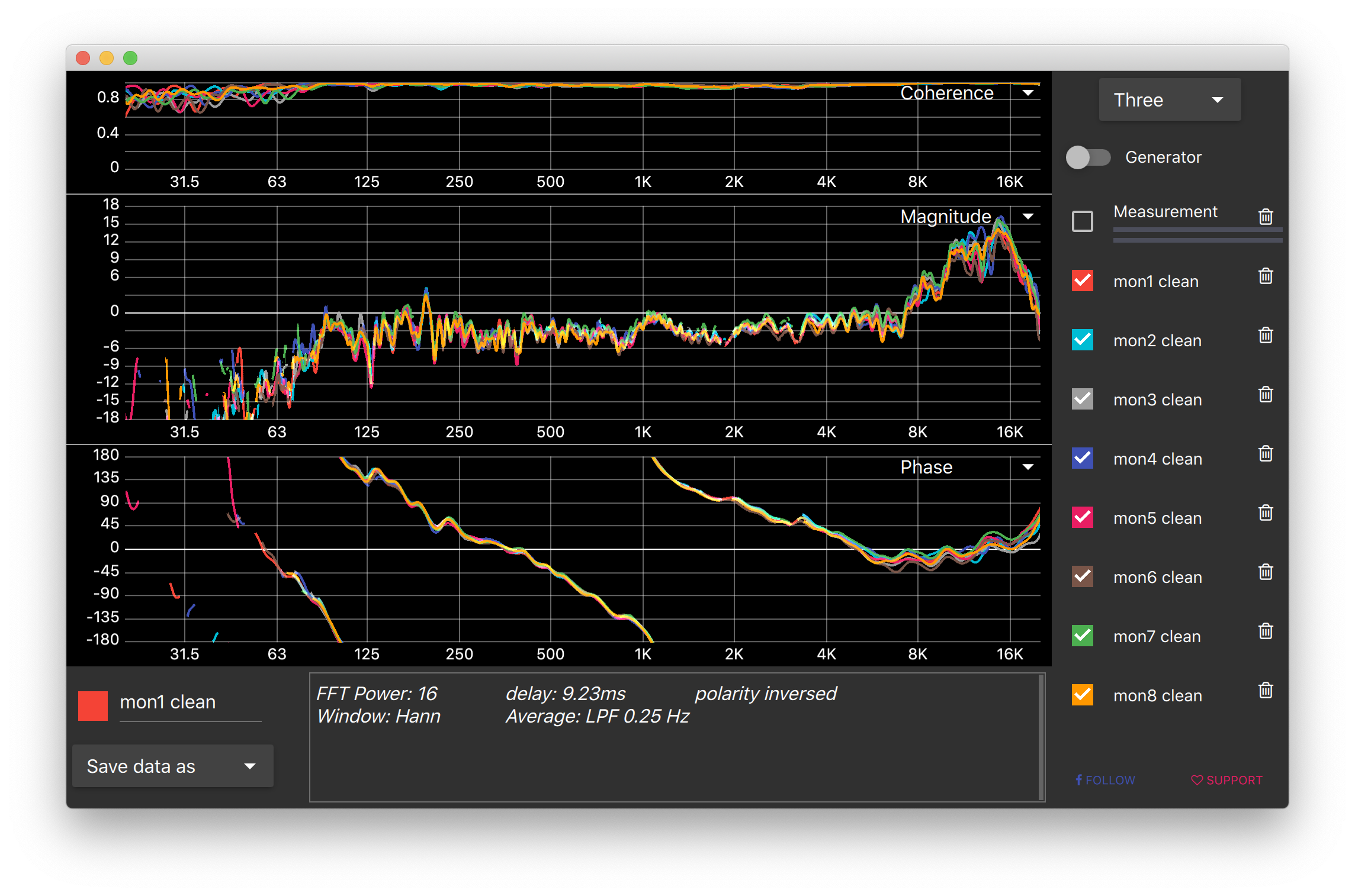 RTA, амплитудная, фазовая и импульсная характеристики, когерентность, групповая задержка и др